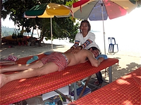 We had to do the islands and beaches, and we did. We should've done it sooner and for longer, but it was fantastic nonetheless. Koh Chang beaches are noted for their beauty but it is getting overdeveloped. We stayed in a bungalow by the beach, playing in the sand, watching cabaret at night (can you guess who in the above picture are transvestites?), and getting massages. This was a very reminiscent of the tranquility I experienced my first time in Thailand in Ko Samui/Phangan about ten years back.